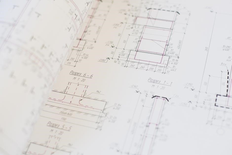 The electrical plan layout PDF for commercial buildings includes detailed schematics of lighting circuits, fixture locations, and control systems. This ensures that the installation meets safety standards and provides optimal performance. Proper planning of lighting systems is essential for reducing energy consumption and enhancing the overall user experience in commercial spaces;